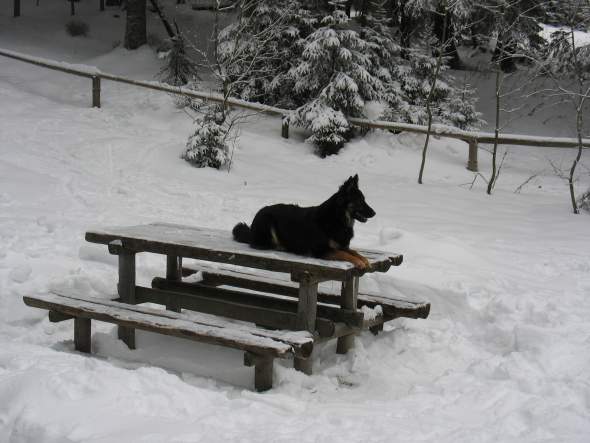 Opět jsme se vydali na jih za sněhem. V sobotu 27. 12. na jezero Laka. Tentokrát jsme však vyrazili s celou bandou psů. Giri byla jediným zástupcem chodských psů, ale byť nejmenší ovčák, zapadla do party.